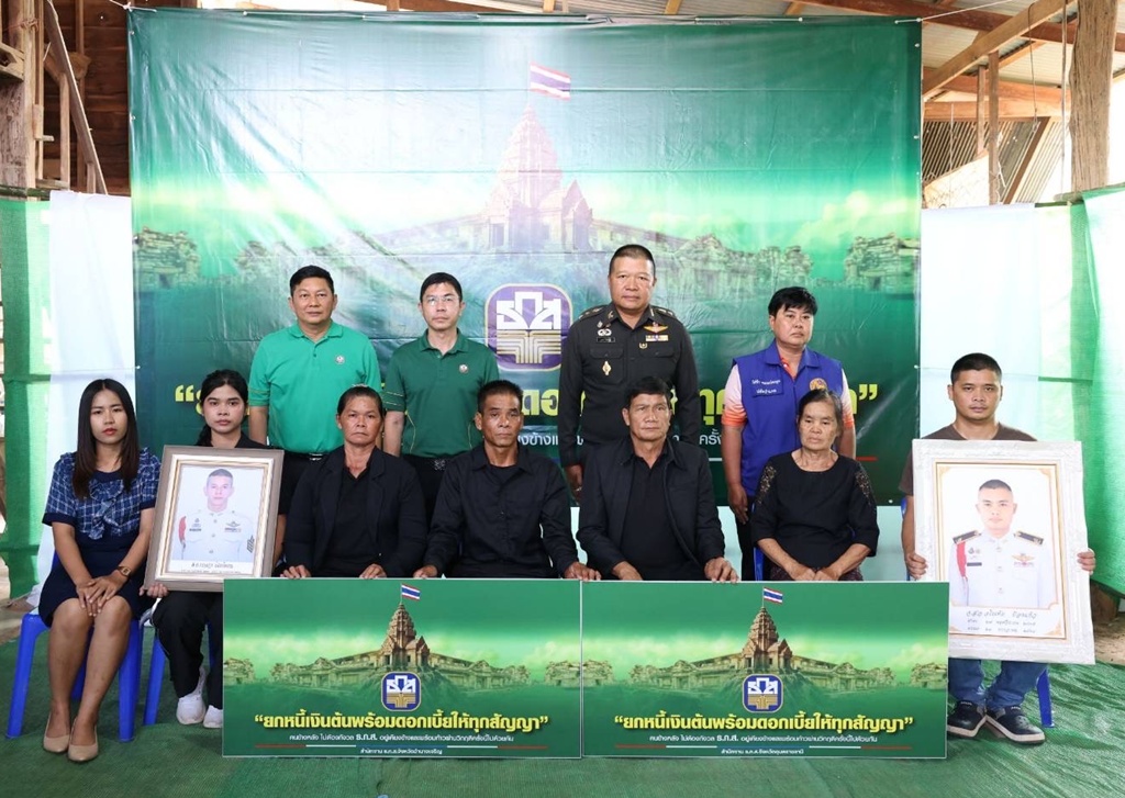 โดย ธ.ก.ส. ได้มอบความช่วยเหลือแก่ครอบครัวทหารตามมติที่ประชุมคณะกรรมการธนาคาร เมื่อวันที่ 31 กรกฎาคม 2568 ที่เห็นชอบการให้ความช่วยเหลือลูกหนี้ กรณีบุตร หรือคู่สมรส ของลูกค้า ธ.ก.ส. เป็นทหาร หรือ ตำรวจตระเวนชายแดน (ตชด.) ที่เสียชีวิตจากการปฏิบัติหน้าที่ในเหตุการณ์ความไม่สงบระหว่างประเทศไทย – กัมพูชา โดยยกหนี้ในส่วนของต้นเงินกู้ทุกสัญญา และ ยกหนี้ในส่วนของดอกเบี้ยทั้งจำนวน ภายใต้สัญญาที่ใช้แหล่งเงินทุน ธ.ก.ส. เป็นกรณีพิเศษ เพื่อให้ความช่วยเหลือ และ ลดภาระให้ทั้ง 2 ครอบครัววีรชนทหารที่เสียสละชีวิตเพื่อภารกิจสำคัญในการปกป้องอธิปไตยและความมั่นคงของชาติให้สามารถดำรงชีพต่อไปได้อย่างมั่นคงต่อไป โดย ผู้จัดการ ธ.ก.ส. ได้กล่าวแสดงความเสียใจอย่างสุดซึ้งกับทั้ง 2 ครอบครัววีรชนทหารกล้าที่ต้องสูญเสียบุคคลอันเป็นที่รัก ซึ่งความกล้าหาญเหล่านี้จะถูกจารึกไว้ในความทรงจำของคนไทยตลอดไป โดย ธ.ก.ส. รู้สึกเป็นเกียรติที่ได้มีโอกาสมาให้กำลังใจให้แก่ครอบครัววีรชนผู้เสียสละเพื่อส่งมอบความช่วยเหลือกรณีพิเศษในครั้งนี้ และพร้อมให้การสนับสนุนดูแลในด้านต่าง ๆ ตามภารกิจของธนาคารต่อไป