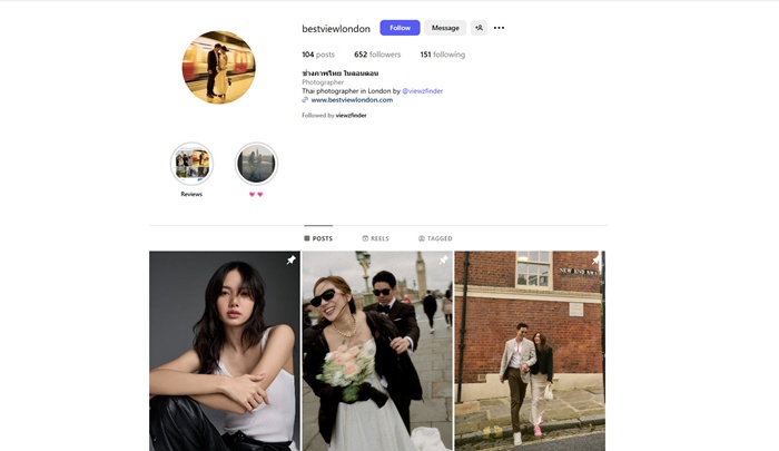 แต่อีกหนึ่ง ช่องทางคือ “Best View London” วิวตั้งใจทำให้เป็นช่องทางที่ให้ลูกค้าบุคคลทั่วไปที่อยากถ่าย Portrait กับวิว เข้าถึงวิวมากขึ้น Best View London จะสบายๆ กว่า มีความ Friendly มากกว่า วิวได้ผสมผสานการถ่าย Pre-wedding และการถ่ายภาพบุคคลตามสถานที่ที่น่าสนใจในลอนดอน ซึ่งวิวเอาความรู้ทั้งหมด และใส่ Fashion ผสมเข้าไปในสไตล์การทำงาน ทำให้สไตล์ของวิวมีความน่าสนใจ ซึ่งช่องทางนี้ Instagram คือ @bestviewlondon และเว็บไซต์ http://www.bestviewlondon.com