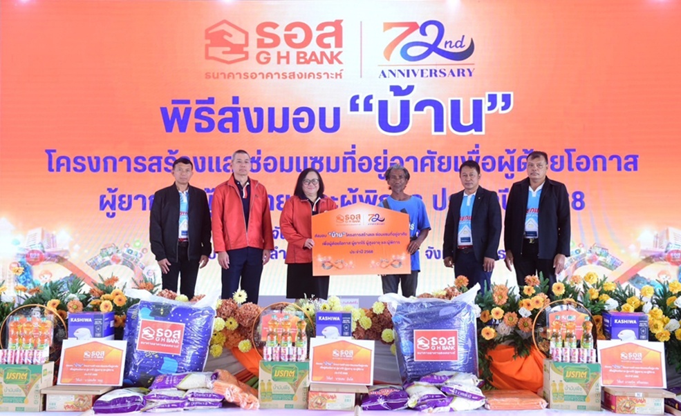 นายกมลภพ วีระพละ กรรมการผู้จัดการธนาคารอาคารสงเคราะห์ (ธอส.) เปิดเผยว่า ธอส. เดินหน้าตอบแทนสังคม ยกระดับคุณภาพชีวิตคนไทยให้ได้มีที่อยู่อาศัยเป็นของตนเอง สนับสนุนความเข้มแข็งของชุมชนให้สามารถพัฒนาตนเองได้อย่างยั่งยืน พร้อมส่งมอบบ้านให้แก่ประชาชน ภายใต้ “โครงการสร้างและซ่อมแซมที่อยู่อาศัยเพื่อผู้ด้อยโอกาส ผู้ยากไร้ ผู้สูงอายุ และผู้พิการ” โดยในปี 2568 ธอส. ได้ดำเนินการสร้างและซ่อมแซมบ้าน จำนวน 258 หลัง แบ่งเป็น สร้างบ้านใหม่จำนวน 29 หลัง และซ่อมแซมบ้านจำนวน 229 หลัง ในวันนี้ ธอส.ได้จัดพิธีส่งมอบบ้านตามโครงการดังกล่าว โดยได้รับเกียรติจากนางสาวปิยวรรณ ล่ามกิจจา กรรมการผู้แทนกระทรวงการคลัง และนายธะเรศ โปษยานนท์ กรรมการธนาคาร เป็นผู้ส่งมอบบ้านสร้างใหม่จำนวน 1 หลังและบ้านซ่อมแซม จำนวน 5 หลัง ในพื้นที่ตำบลลำลูกกา อำเภอลำลูกกา จังหวัดปทุมธานี และบ้านซ่อมแซมจำนวน 5 หลัง ในพื้นที่ตำบลบางศรีเมือง อำเภอเมืองนนทบุรี จังหวัดนนทบุรี ทั้งนี้ ธอส. ได้รับความร่วมมือจากเทศบาลตำบลลำลูกกา จังหวัดปทุมธานี และเทศบาลเมืองบางศรีเมือง จังหวัดนนทบุรี ในการคัดเลือกประชาชนกลุ่มเป้าหมายเพื่อเข้าร่วมโครงการฯ