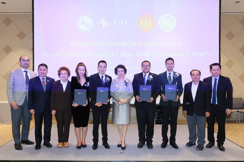 กระทรวงพาณิชย์ โดยสถาบันวิจัยและพัฒนาอัญมณีและเครื่องประดับแห่งชาติ (องค์การมหาชน) หรือ GIT ร่วมกับการท่องเที่ยวแห่งประเทศไทย (ททท.) กรมการท่องเที่ยว และสำนักงานคณะกรรมการคุ้มครองผู้บริโภค (สคบ.) จัดพิธีลงนามบันทึกข้อตกลงความร่วมมือ (MOU) ภายใต้โครงการ “ซื้อด้วยความมั่นใจ” (Buy with Confidence: BWC) วันพฤหัสบดีที่ 12 กันยายน 2568 เวลา 13.30 –15.00 น. ณ ห้องประชุม 110C ชั้น 1 ศูนย์การประชุมแห่งชาติสิริกิติ์ โดยได้รับเกียรติจากนายนันทวัลย์ ศกุนตนาค ประธานกรรมการ GIT เป็นสักขีพยานรวมถึงกล่าวแสดงความยินดี และนายสุเมธ ประสงค์พงษ์ชัย ผู้อำนวยการ GIT กล่าวถึงวัตถุประสงค์ของการจัดงาน