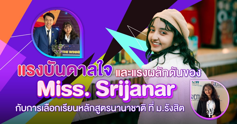 Miss. Srijanar นักศึกษาชั้นปีที่ 3 สาขาวิชาธุรกิจระหว่างประเทศ วิทยาลัยนานาชาติ มหาวิทยาลัยรังสิต กล่าวว่า ตนจบการศึกษาระดับมัธยมศึกษาจากโรงเรียน VEC Private High School เมืองมัณฑะเลย์ ประเทศเมียนมา ด้วยพื้นเพที่เติบโตมาในเขตชนบทเล็ก ๆ ของเมียนมา เธอได้รับแรงบันดาลใจจากคนที่เคยมีโอกาสไปเรียนต่อต่างประเทศ และนั่นกลายเป็นแรงผลักดันสำคัญที่ทำให้เธอเลือกศึกษาต่อในหลักสูตรนานาชาติ ที่สามารถเปิดมุมมองความเข้าใจต่อตลาดโลกและการดำเนินธุรกิจในระดับสากล โดยเฉพาะอย่างยิ่งเมื่อครอบครัวของเธอประกอบธุรกิจอยู่แล้ว เธอจึงต้องการเรียนรู้สิ่งที่สามารถนำกลับไปพัฒนาและขยายธุรกิจของครอบครัวได้จริง