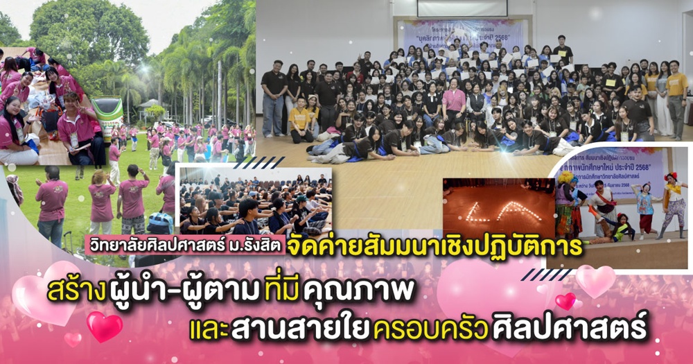 ฝ่ายกิจการนักศึกษา วิทยาลัยศิลปศาสตร์ มหาวิทยาลัยรังสิต จัดกิจกรรมสัมมนาเชิงปฏิบัติการ “บุคลิกภาพนักศึกษาใหม่ ประจำปี 2568” โดยมีวัตถุประสงค์เพื่อเสริมสร้างความเป็นผู้นำ การทำงานเป็นทีม และการอยู่ร่วมกันอย่างสร้างสรรค์ พร้อมปลูกฝังจิตสำนึกความเป็นพลเมืองในสังคมประชาธิปไตย กิจกรรมตลอด 3 วันเต็ม ได้รับความร่วมมืออย่างอบอุ่นจากคณาจารย์ และการมีส่วนร่วมอย่างสร้างสรรค์จากนักศึกษาทุกชั้นปี ณ วิลล่า พาราดี เขาใหญ่ จังหวัดนครราชสีมา