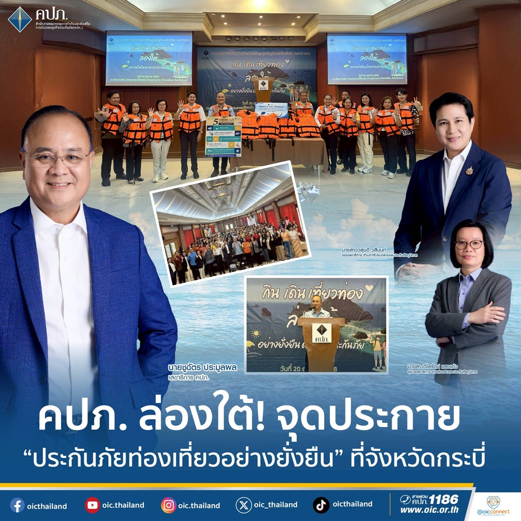 เมื่อวันที่ 20 ตุลาคม 2568 สำนักงานคณะกรรมการกำกับและส่งเสริมการประกอบธุรกิจประกันภัย (สำนักงาน คปภ.) นำโดย นายชูฉัตร ประมูลผล เลขาธิการ คปภ. ลงพื้นที่จังหวัดกระบี่ เปิดโครงการส่งเสริมประกันภัยเชิงรุก ภายใต้แนวคิด “กิน เดิน เที่ยวท่อง ล่องใต้อย่างยั่งยืน ด้วยการประกันภัย” ณ โรงแรมกระบี่ รีสอร์ท ตำบลอ่าวนาง อำเภอเมือง จังหวัดกระบี่