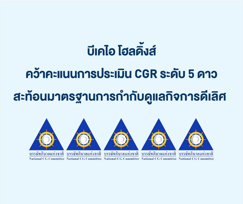 บริษัท บีเคไอ โฮลดิ้งส์ จำกัด (มหาชน) ได้รับคะแนนการประเมินโครงการสำรวจการกำกับดูแลกิจการบริษัทจดทะเบียนไทย ประจำปี 2568 (Corporate Governance Report of Thai Listed Companies : CGR) ในระดับดีเลิศ (Excellent) หรือระดับ 5 ดาว จากสมาคมส่งเสริมสถาบันกรรมการบริษัทไทย (IOD) ผลการประเมินดังกล่าวสะท้อนให้เห็นถึงความมุ่งมั่นของบริษัทฯ ในการดำเนินธุรกิจภายใต้หลักบรรษัทภิบาลที่ดี (Good Corporate Governance) โดยให้ความสำคัญกับการบริหารจัดการที่โปร่งใส ตรวจสอบได้ และมีความรับผิดชอบต่อผู้มีส่วนได้เสียทุกกลุ่ม ไม่ว่าจะเป็นผู้ถือหุ้น ลูกค้า พนักงาน คู่ค้า ชุมชน และสังคมโดยรวม