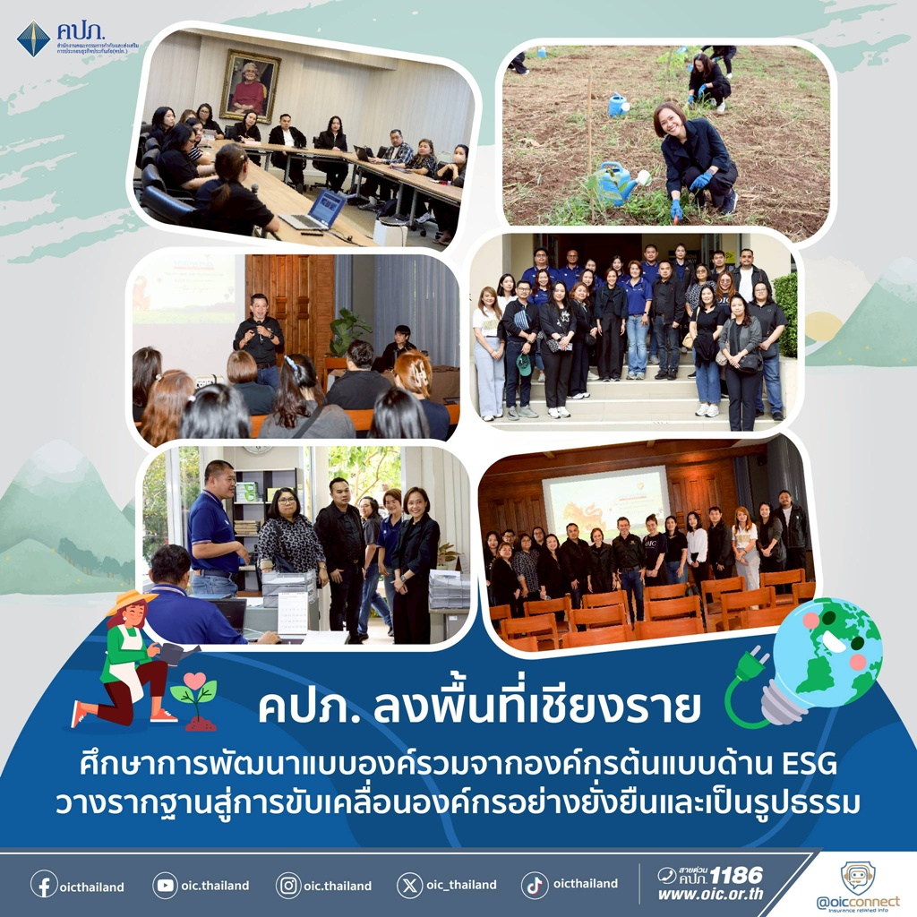 ตามที่สำนักงานคณะกรรมการกำกับและส่งเสริมการประกอบธุรกิจประกันภัย (สำนักงาน คปภ.) ดำเนินโครงการ “ขับเคลื่อนการพัฒนาองค์กรอย่างยั่งยืน (ESG)” ให้แก่บุคลากรมาระยะหนึ่ง ผ่านการจัดอบรมความรู้ด้าน ESG เพื่อส่งเสริมให้พนักงานทุกคนมีบทบาทในการขับเคลื่อนสำนักงาน คปภ. ไปสู่การเป็นองค์กรต้นแบบด้านการพัฒนาองค์กรอย่างยั่งยืน และวางรากฐานความเข้าใจร่วมกันในช่วงที่ผ่านมา ทั้งนี้ เพื่อให้การพัฒนาองค์ความรู้ด้าน ESG มีความสมบูรณ์และเชื่อมโยงกับการปฏิบัติจริง สำนักงาน คปภ. เห็นความสำคัญของการศึกษาดูงานจากหน่วยงานที่มีผลงานโดดเด่นและได้รับการยอมรับในวงกว้างด้านการพัฒนาอย่างยั่งยืน (ESG) โดยได้จัดกิจกรรมศึกษาดูงานด้าน ESG ในพื้นที่จังหวัดเชียงราย ระหว่างวันที่ 4 – 6 พฤศจิกายน 2568 โดยมี ดร.ชญานิน เกิดผลงาม รองเลขาธิการ ด้านกลยุทธ์และเทคโนโลยี นำคณะเจ้าหน้าที่ของสำนักงาน คปภ. ลงพื้นที่ เพื่อเรียนรู้แนวทางการพัฒนาอย่างยั่งยืนจากองค์กรต้นแบบที่หลากหลายมิติ ทั้งภาคสังคม ภาคเอกชน และชุมชนท้องถิ่น