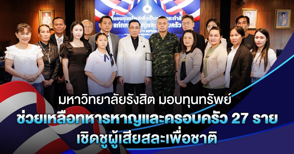 มหาวิทยาลัยรังสิต จัดพิธีมอบทุนทรัพย์เพื่อเป็นขวัญและกำลังใจแก่ทหารหาญและครอบครัว รวมจำนวน 27 ราย โดยมีครอบครัวทหาร 7 ครอบครัวเดินทางเข้ารับมอบด้วยตนเอง ส่วนอีก 20 ครอบครัวได้รับการประสานงานผ่าน พลโทบุญสิน พาดกลาง ที่ปรึกษาผู้บัญชาการทหารบก และอดีตแม่ทัพภาคที่ 2 รับมอบในฐานะผู้แทนเพื่อนำไปส่งต่ออย่างเป็นทางการ ณ ห้อง 1-801 อาคารอาทิตย์ อุไรรัตน์ (อาคาร 1) มหาวิทยาลัยรังสิต