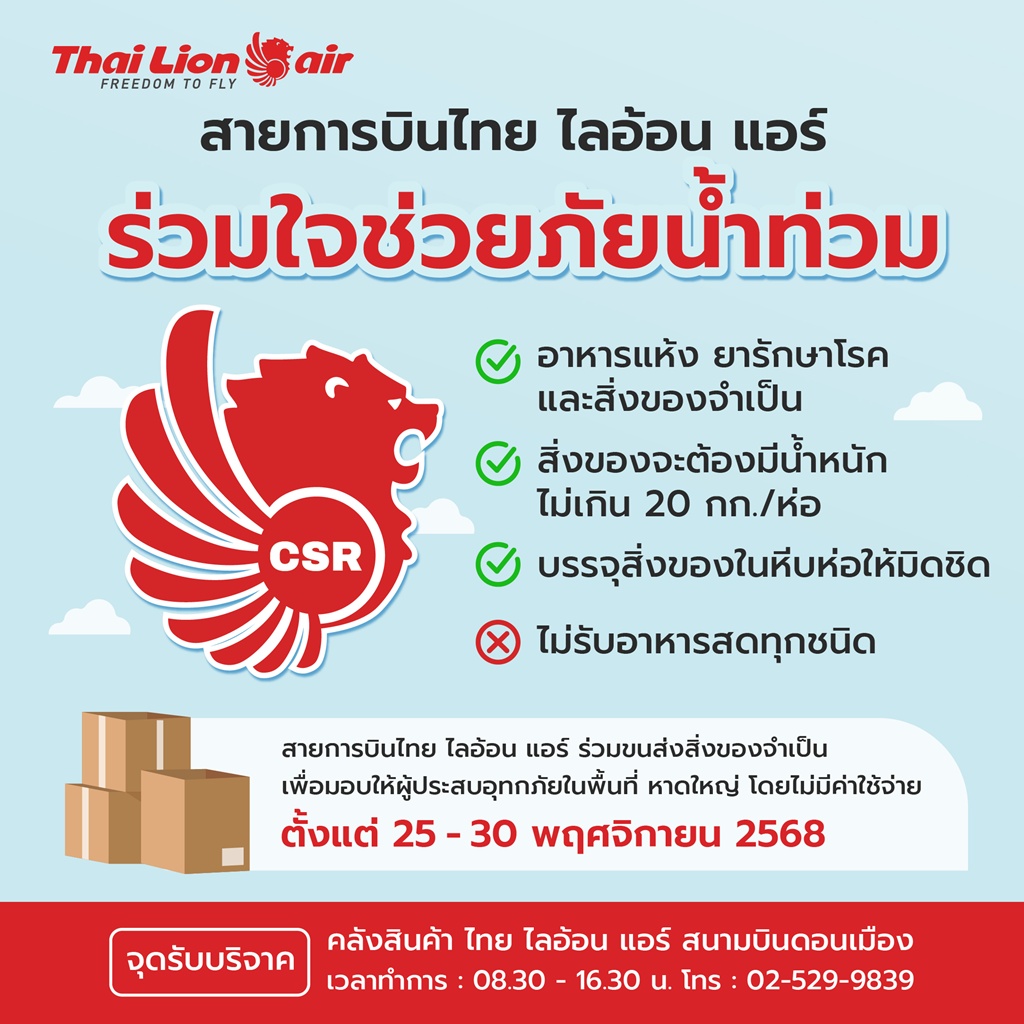 จุดรับบริจาค คลังสินค้า ไทย ไลอ้อน แอร์ สนามบินดอนเมือง