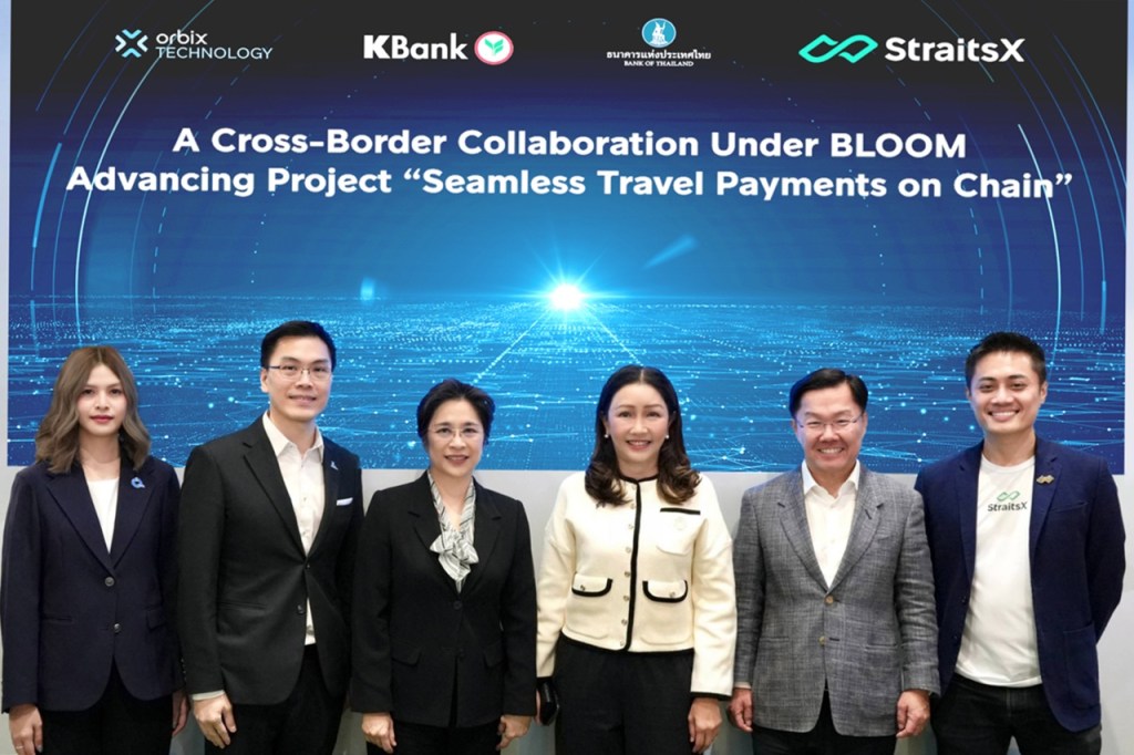 นางสาวขัตติยา อินทรวิชัย (ที่ 3 จากขวา) ประธานเจ้าหน้าที่บริหาร ดร.กรินทร์ บุญเลิศวณิชย์ (ที่ 2 จากซ้าย) รองผู้จัดการใหญ่ ธนาคารกสิกรไทย นางสาวจิรัชณา บุญธรรม (ซ้าย) ผู้อำนวยการฝ่ายการตลาดและคอมมูนิตี้ บริษัท ออร์บิกซ์ เทคโนโลยี แอนด์ อินโนเวชั่น จำกัด พร้อมด้วย Mr. Tianwei Liu (ขวา) ผู้ร่วมก่อตั้งและประธานเจ้าหน้าที่บริหาร บริษัท StraitsX ร่วมด้วย ดร.รุ่ง โปษยานนท์ มัลลิกะมาส (ที่ 3 จากซ้าย) รองผู้ว่าการด้านเสถียรภาพสถาบันการเงิน ธนาคารแห่งประเทศไทย และ Mr. Leong Sing Chiong (ที่ 2 จากขวา) รองกรรมการผู้จัดการใหญ่สายงานตลาดและการพัฒนา ธนาคารกลางสิงคโปร์ ประกาศความร่วมมือระดับนานาชาติ เปิดตัว Seamless Travel Payments on Chain ภายใต้โครงการ BLOOM (Borderless, Liquid, Open, Online, Multi-currency) ของธนาคารกลางสิงคโปร์ เพื่อเชื่อมโยงระบบชำระเงินดิจิทัลสำหรับนักเที่ยวไทยและสิงคโปร์ผ่านบล็อกเชน รองรับการชำระเงินแบบเรียลไทม์ด้วย QR Code และเงินอิเล็กทรอนิกส์ (E-money) โดยมีแผนเปิดให้บริการในปี พ.ศ. 2569 โดยความร่วมมือนี้ถือเป็นก้าวสำคัญในการยกระดับประสบการณ์การชำระเงินข้ามพรมแดนให้สะดวก รวดเร็ว ปลอดภัย และเป็นไปตามมาตรฐานการกำกับดูแลจากหน่วยงานที่เกี่ยวข้อง โดยจัดขึ้นในงาน Singapore FinTech Festival 2025 ณ ประเทศสิงคโปร์ เมื่อเร็ว ๆ นี้