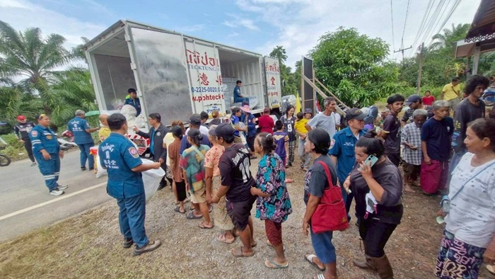 สำหรับการแจกจ่ายเครื่องอุปโภคบริโภคในพื้นที่จังหวัดสงขลา นางศิริพร กระจ่างหล้า ผู้จัดการฝ่ายสังคมสงเคราะห์ นำทีมสังคมสงเคราะห์ พร้อมทีมบรรเทาสาธารณภัย ฝ่ายปฏิบัติการ (คาราวานป่อเต็กตึ๊ง ส่งต่อธารน้ำใจ สาย 1) ได้ยกทัพเครื่องอุปโภคบริโภคบรรทุกรถเทรลเลอร์ 4 คัน ลงพื้นที่ตั้งแต่วันอาทิตย์ที่ 30 พฤศจิกายน 2568 ที่ผ่านมา โดยได้เร่งแจกจ่ายเครื่องอุปโภคบริโภคให้กับผู้ประสบภัยในพื้นที่ อาทิ ตำบลหาดใหญ่ ตำบลบ้านไร่ ตำบลควนลัง ตำบลระโนด จังหวัดสงขลา แล้วกว่า 2,900 ชุด