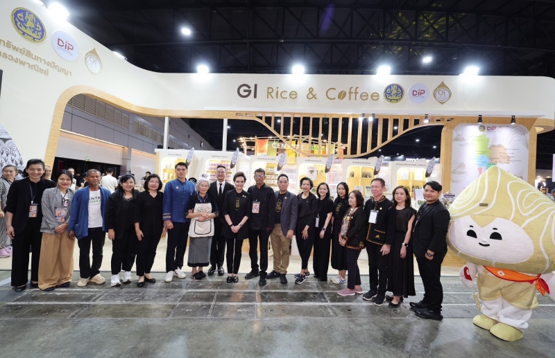 นางศุภจี กล่าวว่า สำหรับบูธ GI Pavilion ในงาน THAILAND RICE FEST 2025 และงาน THAILAND COFFEE FEST YEAR END 2025 เกิดจากความร่วมมือระหว่างกระทรวงพาณิชย์ โดยกรมทรัพย์สินทางปัญญา และบริษัท คลาวด์แอนด์กราวนด์ จำกัด (The Cloud) นำผู้ประกอบการสินค้า GI และว่าที่ GI รวม 12 รายมาร่วมจัดแสดงและจำหน่ายสินค้า นับเป็นโอกาสอันดีที่จะทำให้เกิด Quick Big Win ในการเสริมแกร่งผู้ประกอบการและเพิ่มมูลค่าสินค้า GI ไทย ทั้งยังช่วยเพิ่มโอกาสทางการตลาดใหม่ๆ โดยในงานมีประชาชน ผู้ค้า นักลงทุน ทั้งชาวไทยและต่างชาติ แวะมาที่บูธ GI Pavilion เป็นจำนวนมาก เพื่อเยี่ยมชมและเลือกซื้อสินค้าข้าวและกาแฟ GI ไม่ว่าจะเป็นข้าวหอมมะลิทุ่งกุลาร้องไห้ (ศรีสะเกษ) ข้าวสังข์หยดเมืองพัทลุง ข้าวหอมมะลิสุรินทร์ ข้าวก่ำล้านนา (พะเยา) ข้าวไร่ลืมผัวเพชรบูรณ์ ข้าวเหนียวเขาวงกาฬสินธุ์ กาแฟดอยตุง (เชียงราย) กาแฟดอยสวนยาหลวงน่าน กาแฟเทพเสด็จ (เชียงใหม่) กาแฟวังน้ำเขียว (นครราชสีมา) และกาแฟเมืองกระบี่ รวมทั้งสินค้าว่าที่ GI กาแฟมณีพฤกษ์ (น่าน)