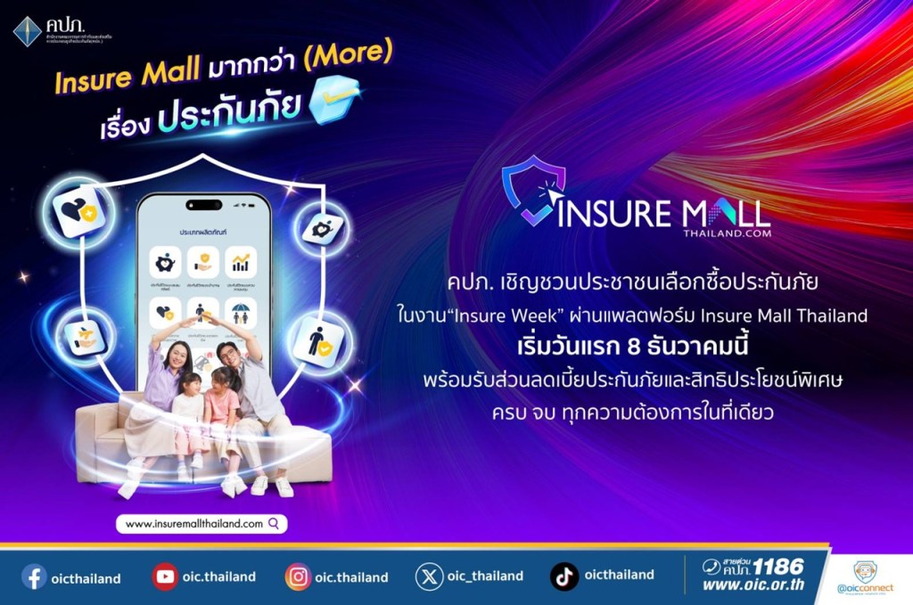 สำหรับเว็บไซต์ http://www.insuremallthailand.com ได้รับการพัฒนาโดยสำนักงาน คปภ. เพื่อทำหน้าที่เป็นแพลตฟอร์มศูนย์รวมผลิตภัณฑ์และบริการด้านประกันภัยจากบริษัทประกันภัย บริษัทนายหน้าประกันภัย และธนาคารชั้นนำของประเทศ โดยนำเสนอผลิตภัณฑ์ประกันภัยมากกว่า 100 แผน ผ่านความร่วมมือจากพันธมิตรมากกว่า 50 แห่ง แพลตฟอร์มดังกล่าวได้รับการออกแบบให้มีความทันสมัย ใช้งานง่าย และสามารถเข้าถึงได้จากทุกพื้นที่ พร้อมฟังก์ชันสำคัญ ได้แก่ ระบบเปรียบเทียบผลิตภัณฑ์ประกันภัย การถ่ายทอดสดข้อมูลจากบริษัทประกันภัย ระบบสะสมพอยต์ผ่านกิจกรรม Gamification วิดีโอแบบ Add to Cart ที่เชื่อมโยงไปยังหน้าผลิตภัณฑ์โดยตรง ตลอดจนระบบจัดหมวดหมู่ผลิตภัณฑ์เพื่อช่วยให้ประชาชนเลือกซื้อประกันภัยได้อย่างมีประสิทธิภาพ ทั้งหมดนี้สอดคล้องกับสโลแกน “Insure Mall ครบทุกเรื่องประกันภัย จบทุกความต้องการ” โดยในระหว่างวันที่ 8 – 14 ธันวาคม 2568 สำนักงาน คปภ. ได้กำหนดจัดงาน “Insure Week” เพื่อส่งเสริมการใช้บริการแพลตฟอร์มและเพิ่มโอกาสให้ประชาชนเข้าถึงผลิตภัณฑ์ประกันภัยที่เหมาะสมกับความต้องการ ในช่วงเวลาดังกล่าว ประชาชนจะได้รับสิทธิประโยชน์ตามเงื่อนไขที่กำหนด ได้แก่ ส่วนลดค่าเบี้ยประกันภัย สิทธิ์ลุ้นของรางวัล และสิทธิประโยชน์ทางภาษี รวมถึงสิทธิ์สะสมพอยต์สำหรับแลกรางวัล ทั้งนี้ สิทธิประโยชน์ดังกล่าวเปิดให้เฉพาะผู้ที่สมัครเป็นสมาชิกของ Insure Mall Thailand