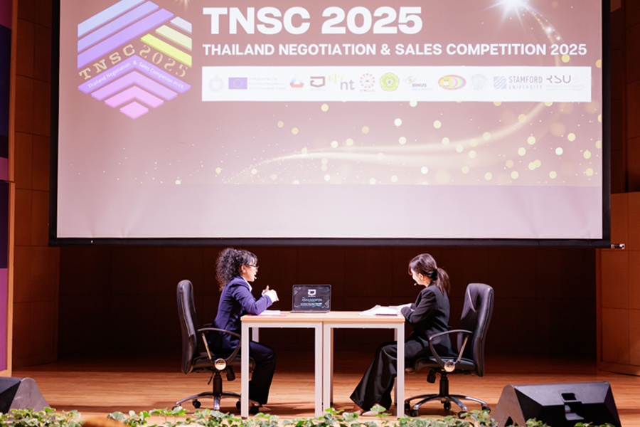 สาขาวิชาธุรกิจระหว่างประเทศ วิทยาลัยนานาชาติ มหาวิทยาลัยรังสิต ร่วมกับโครงการ Erasmus+ ของสหภาพยุโรป จัดการแข่งขัน Thailand Negotiation & Sales Competition (TNSC) 2025 เวทีระดับประเทศที่มุ่งพัฒนาทักษะการขายและการเจรจาต่อรองด้วยภาษาอังกฤษ ณ ห้องออดิทอเรียม (11-101) อาคารรัตนคุณากร (อาคาร 11) มหาวิทยาลัยรังสิต