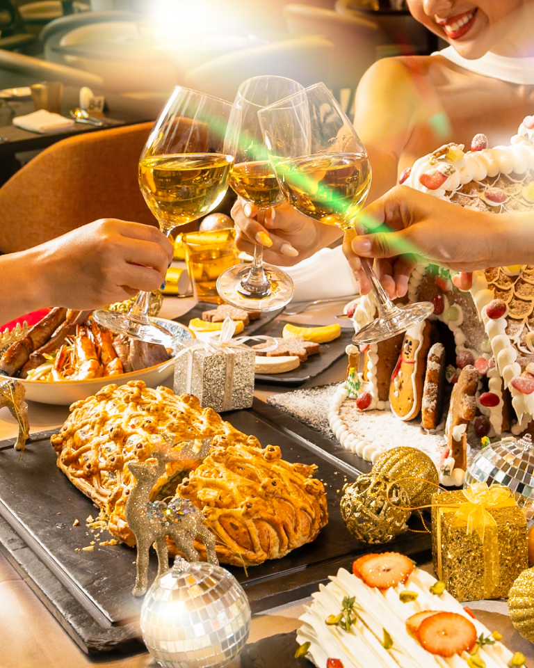 เฉลิมฉลองและดื่มด่ำกับบรรยากาศแห่งคริสต์มาสด้วยบุฟเฟต์สุดอลังการจากทั่วทุกมุมโลก เมนูไฮไลต์ เริ่มจาก แฮมเซอร์ราโน่เสิร์ฟกับเมลอน ค็อกเทลล็อบสเตอร์ ซีฟู้ดออนไอซ์ระดับพรีเมียม เนื้อสันในอบซอสทรัฟเฟิล ฟัวกราส์ซูชิ และ ไก่งวงอบซอสแครนเบอร์รี่ และเมนูนานาชาติ อื่นๆ อีกมากมาย ที่พร้อมขนขบวนมาให้คุณ ปิดท้ายความอร่อยด้วย ช็อกโกแลตฟาวเท่น คริสต์มาสเค้ก พุดดิ้งสูตรดั้งเดิม และ ไอศกรีมฮาเก้น-ดาสส์