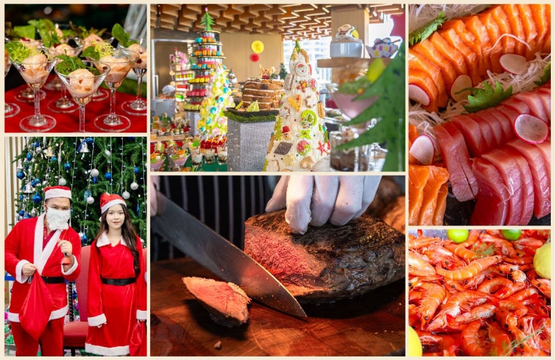 บุฟเฟต์มื้อกลางวันวันคริสต์มาสสุดยิ่งใหญ่ที่ทุกคนรอคอย อิ่มเอมกับบุฟเฟต์นานาชาติสุดอลังการที่รวมเมนูยอดนิยมจากทั่วโลก พร้อมจานพิเศษประจำเทศกาลสุดประทับใจ อาทิ ไก่งวงอบสูตรดั้งเดิม, คริสต์มาสแฮม, หมูกรอบหนังกรอบฟู, เป็ดห่อแพนเค้ก, ซูชิและซาชิมิสดใหม่, แกงมัสมั่นเนื้อวากิวออสเตรเลีย, แกงชีสสดสไตล์อินเดีย, ปลากะพงทอดกรอบ และซีฟู้ดสดนานาชนิด เสิร์ฟพร้อมน้ำจิ้มรสเด็ด เติมเต็มบรรยากาศแห่งความสุขด้วยเสียงดนตรีสด และการมาปรากฏตัวของซานตาคลอส ที่จะมาสร้างรอยยิ้มและมอบของขวัญสุดน่ารักให้ทุกคนในครอบครัว