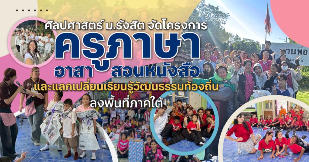 ฝ่ายกิจการนักศึกษา วิทยาลัยศิลปศาสตร์ มหาวิทยาลัยรังสิต นำนักศึกษาในโครงการ “ครูภาษา อาสาสอนหนังสือและแลกเปลี่ยนเรียนรู้วัฒนธรรมท้องถิ่น” ส่งเสริมจิตอาสา และสร้างโอกาสทางการศึกษาให้แก่เยาวชนในพื้นที่ห่างไกล โดยคณาจารย์ และนักศึกษาได้ใช้ชีวิตแบบพึ่งพาตนเอง ทั้งการประกอบอาหารรับประทานเองและดูแลความสะอาดที่พัก เพื่อฝึกทักษะการใช้ชีวิตและการทำงานร่วมกันเป็นทีมตลอดระยะเวลากว่า 10 วัน ณ จังหวัดนครศรีธรรมราช และจังหวัดตรัง