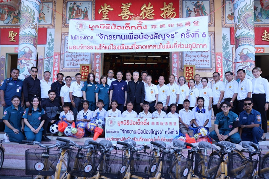 ระหว่างวันที่ 11 พฤศจิกายน 2568 – 22 มกราคม 2569 มูลนิธิป่อเต็กตึ๊ง โดย นายวิเชียร เตชะไพบูลย์ ห่วงใยนักเรียนในพื้นที่ชนบทภาคกลางและภาคใต้ มอบหมายให้ คณะกรรมการ และผู้ช่วยกรรมการมูลนิธิฯ นำโดย นายจารุรัตน์ คุณัตถานนท์ กรรมการและเหรัญญิก นายสุรพงศ์ เสรฐภักดี กรรมการและรองเหรัญญิก นายชาญกิจ วิทยาวรากรณ์ กรรมการ นายชูเดช เตชะไพบูลย์ ผู้ช่วยกรรมการ นำทีมฝ่ายสาธารณภัย และฝ่ายสังคมสงเคราะห์ ลงพื้นที่ภาคกลางและภาคใต้ มอบรถจักรยานพร้อมอุปกรณ์กีฬาและค่าพาหนะให้แก่โรงเรียนชนบทที่ขาดแคลนภาคกลางและภาคใต้ ในโครงการ “จักรยานเพื่อน้องสัญจร” ครั้งที่ 6 รวม 20 จังหวัด 100 โรงเรียน ประกอบด้วย จังหวัดพระนครศรีอยุธยา ลพบุรี ชัยนาท สุพรรณบุรี กาญจนบุรี สมุทรสงคราม ชลบุรี จันทบุรี ตราด สระแก้ว ชุมพร สุราษฎร์ธานี นครศรีธรรมราช พัทลุง ตรัง สตูล สงขลา ปัตตานี ยะลา และนราธิวาส รวมจำนวนจักรยาน 2,000 คัน อุปกรณ์กีฬา จำนวน 100 ชุด และค่าพาหนะแก่โรงเรียนๆ ละ 2,000 บาท รวมงบประมาณดำเนินการทั้งสิ้น 2,854,000 บาท (สองล้านแปดแสนห้าหมื่นสี่พันบาทถ้วน) เพื่ออำนวยความสะดวกแก่นักเรียนที่ประสบปัญหาในการเดินทางมาโรงเรียน รวมถึงเป็นการแบ่งเบาภาระค่าพาหนะแก่ผู้ปกครองได้อีกทางหนึ่ง อีกทั้งยังเสริมสร้างให้นักเรียนได้ออกกำลังกาย เรียนรู้กฎจราจร เรียนรู้การแบ่งปัน และดูแลรักษาสาธารณสมบัติร่วมกัน