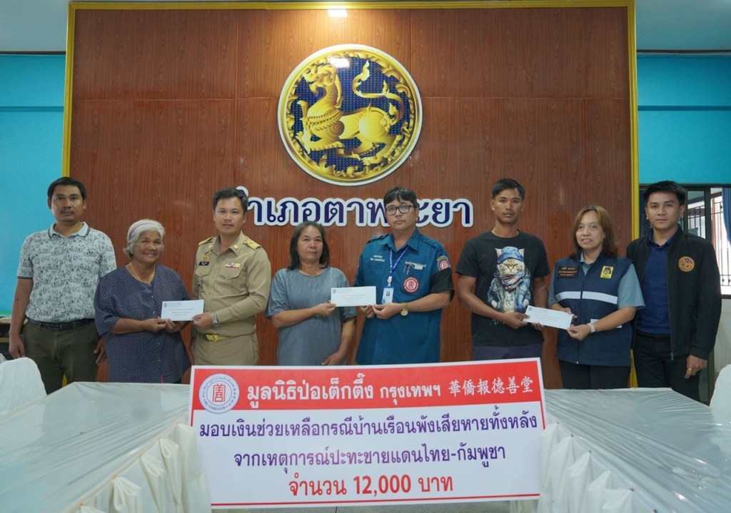 มูลนิธิป่อเต็กตึ๊ง โดย นายวิเชียร เตชะไพบูลย์ ประธานกรรมการ ห่วงใยผู้ได้รับผลกระทบจากเหตุการณ์ดังกล่าว จึงได้มอบหมายให้ฝ่ายสาธารณภัย นำโดย นายรัชพร ประสงค์ทรัพย์ หัวหน้าแผนกสาธารณภัย และนายชุมพล บุญภักดี ผู้ช่วยหัวหน้าแผนกสาธารณภัย นำเจ้าหน้าที่แผนกสาธารณภัย แผนกบรรเทาสาธารณภัย แผนกบัญชี-การเงิน/การธนาคาร และแผนกหน่วยแพทย์สงเคราะห์ชุมชน ลงพื้นที่ชายแดนจังหวัดอุบลราชธานี ศรีสะเกษ สุรินทร์ นครราชสีมา และสระแก้ว รวม 5 จังหวัด ในระหว่างวันที่ 21-23 มกราคม 2569