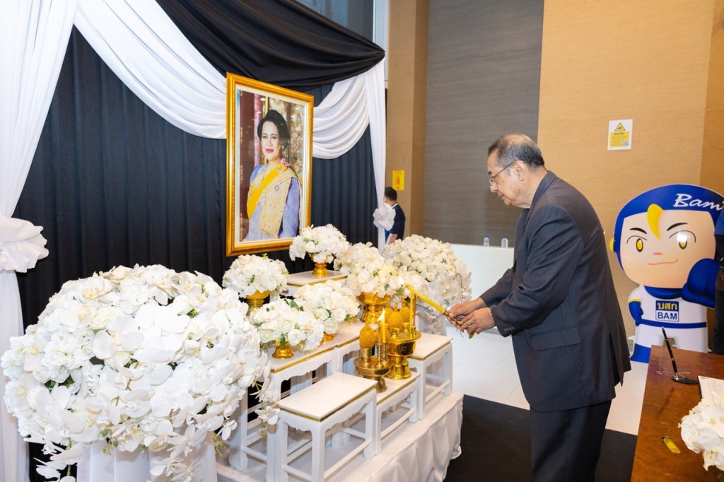 ทั้งนี้ ภายในพิธีได้นิมนต์พระสงฆ์จากวัดยานนาวา กรุงเทพฯ โดยสวดพระพุทธมนต์และประกอบพิธีบำเพ็ญกุศล พร้อมทั้งจัดโต๊ะหมู่บูชา ประดิษฐานพระฉายาลักษณ์ สมเด็จพระนางเจ้าสิริกิติ์ พระบรมราชินีนาถ พระบรมราชชนนีพันปีหลวง เพื่อแสดงความจงรักภักดี แสดงความอาลัย และน้อมสำนึกในพระมหากรุณาธิคุณ อันหาที่สุดมิได้ ณ อาคาร BAM สำนักงานใหญ่