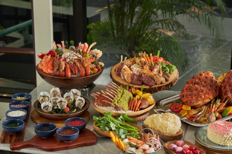ไฮไลต์ของบุฟเฟต์ในคืนของวันแห่งความรัก ได้แก่ คาเวียร์ระดับพรีเมียมจากปลาสเตอร์เจียนคุณภาพเยี่ยม พร้อมคำแนะนำในการเลือกคาเวียร์ให้เหมาะกับรสนิยม แฮมอบเคลือบน้ำตาลทรายแดงและน้ำผึ้ง เสิร์ฟคู่แครอทและมันบดเนื้อนุ่ม ซี่โครงแกะหมักซอสเพสโต้ย่างจนสุกนุ่มพอดี จากนั้นนำไปอบพร้อมผักเคลผสมซอสเพสโต้เพิ่มสัมผัสที่กรุบกรอบ พร้อมด้วยเมนูสตรีทฟู้ดยอดนิยมอย่าง ก๋วยเตี๋ยวเย็นตาโฟ และเมนูของหวานพิเศษเฉพาะวันวาเลนไทน์ อย่างฮันนี่โทสต์ ซึ่งนำขนมปังเนื้อนุ่มมาอบพร้อมเนยจนชุ่มฉ่ำ ราดด้วยน้ำผึ้ง รับประทานพร้อมเครื่องเคียงอันหลากหลาย