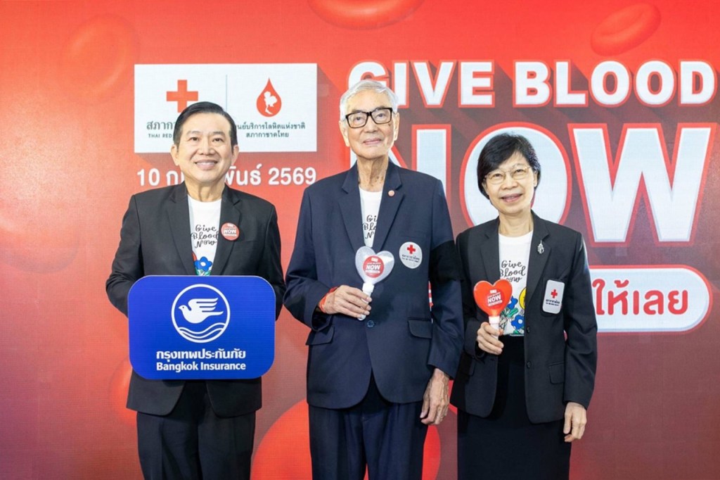 บริษัท กรุงเทพประกันภัย จำกัด (มหาชน) โดยนายธีรยุทธ กิจวรพัฒน์ (ซ้ายสุด) ผู้อำนวยการ ธุรกิจสาขา เป็นตัวแทนมอบเงินจำนวน 1,000,000 บาท ให้แก่สภากาชาดไทย โดยมีนายเตช บุนนาค (กลาง) เลขาธิการสภากาชาดไทย และรองศาสตราจารย์ แพทย์หญิงดุจใจ ชัยวานิชศิริ (ขวาสุด) ผู้อำนวยการศูนย์บริการโลหิตแห่งชาติ สภากาชาดไทย เป็นผู้รับมอบในพิธีแถลงข่าวโครงการ Give Blood Now – ให้เลือด ให้ได้ ให้เลย เพื่อสนับสนุนการจัดทำเสื้อยืดที่ระลึกให้แก่ผู้บริจาคเลือดครบ 3 ครั้งต่อปี และส่งเสริมให้มีการบริจาคโลหิตอย่างต่อเนื่อง ณ ห้องจุมภฏ ชั้น 9 อาคารเฉลิมพระเกียรติบรมราชินีนาถ ศูนย์บริการโลหิตแห่งชาติ เมื่อวันที่ 10 กุมภาพันธ์ 2569