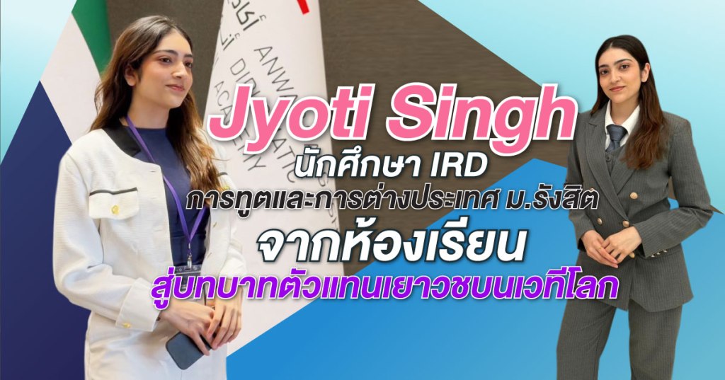 Miss Jyoti Singh (Kaju) นักศึกษาชั้นปีที่ 2 สาขาวิชา International Relations and Development คณะการทูตและการต่างประเทศ มหาวิทยาลัยรังสิต หนึ่งในเยาวชนที่ได้รับการคัดเลือกจากผู้สมัครทั่วโลกให้เข้าร่วมกิจกรรม Change the World Model United Nations (CWMUN) เวทีจำลององค์การสหประชาชาติระดับนานาชาติ ซึ่งจัดขึ้น ณ กรุงอาบูดาบี สหรัฐอาหรับเอมิเรตส์