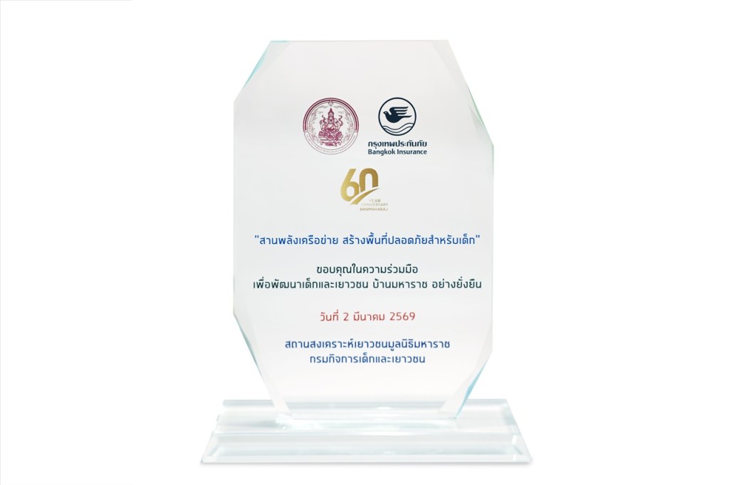 บริษัท กรุงเทพประกันภัย จำกัด (มหาชน) รับโล่แสดงความขอบคุณในความร่วมมือเพื่อพัฒนาเด็กและเยาวชนบ้านมหาราชในงาน Open House ภายใต้โครงการ “สานพลังเครือข่าย สร้างพื้นที่ปลอดภัยสำหรับเด็ก” จัดโดยสถานสงเคราะห์เยาวชนมูลนิธิมหาราช กรมกิจการเด็กและเยาวชน จากการที่บริษัทฯ ให้ความสำคัญต่อการส่งเสริมและพัฒนาศักยภาพเด็กและเยาวชน เพื่อสร้างการเติบโตอย่างเข้มแข็งและมีคุณภาพ ด้วยการสนับสนุนโครงการต่างๆ ของสถานสงเคราะห์เยาวชนมูลนิธิมหาราช ได้แก่ โครงการปรับปรุงพื้นที่เพื่อบรรเทาและแก้ไขปัญหาน้ำท่วม การจัดกิจกรรมพัฒนาเด็กและเยาวชนเพื่อปลูกจิตสำนึกความรับผิดชอบต่อตนเอง สังคม และสิ่งแวดล้อม การจัดอบรมเชิงปฏิบัติการสำหรับผู้บริหารและบุคลากรสถานสงเคราะห์ฯ เพื่อเพิ่มพูนความรู้และทักษะในการปฏิบัติงาน เสริมสร้างทัศนคติที่ดี เพื่อนำไปสู่การพัฒนาคุณภาพชีวิตของเด็กและเยาวชน ณ สถานสงเคราะห์เยาวชนมูลนิธิมหาราช จังหวัดปทุมธานี เมื่อวันที่ 2 มีนาคม 2569