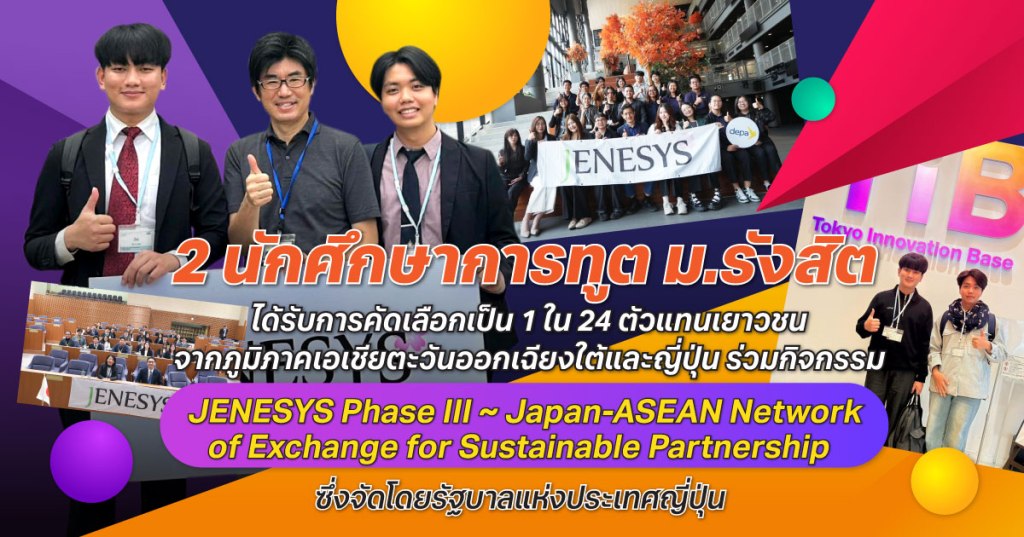 โครงการ JENESYS มีวัตถุประสงค์เพื่อสร้างเครือข่ายความร่วมมือที่ยั่งยืนระหว่างเยาวชนอาเซียนและญี่ปุ่น ผ่านการแลกเปลี่ยนเรียนรู้ด้านวัฒนธรรม เศรษฐกิจ และความสัมพันธ์ระหว่างประเทศ ซึ่งการได้รับคัดเลือกในครั้งนี้สะท้อนให้เห็นถึงศักยภาพของนักศึกษาคณะการทูตและการต่างประเทศ มหาวิทยาลัยรังสิต ที่มีความรู้ความสามารถโดดเด่นในระดับมาตรฐานสากล ความสำเร็จครั้งนี้ยังตอกย้ำแนวคิดของคณะการทูตและการต่างประเทศ มหาวิทยาลัยรังสิต ที่สนับสนุนให้นักศึกษาสามารถก้าวเข้าสู่เวทีการทำงานด้านวิเทศสัมพันธ์ได้ตั้งแต่ชั้นปีที่ 1 โดยเน้นการฝึกทักษะและสร้างประสบการณ์จริง เพื่อเตรียมความพร้อมสู่เส้นทางอาชีพนักการทูตและบุคลากรในองค์กรระหว่างประเทศที่มีคุณภาพในอนาคต