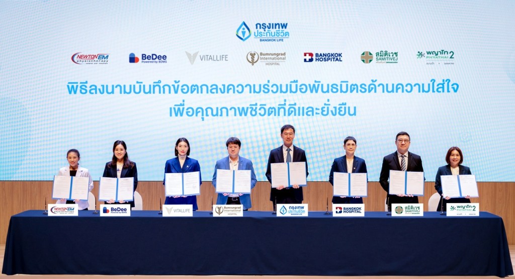 ความร่วมมือในครั้งนี้จึงเป็นอีกก้าวสำคัญของการสร้างระบบการดูแลสุขภาพแบบครบวงจร โดยได้รับความร่วมมือจากพันธมิตรด้านสุขภาพชั้นนำของประเทศ 7 องค์กร ได้แก่ 1. โรงพยาบาลกรุงเทพ สำนักงานใหญ่ 2. โรงพยาบาลบำรุงราษฎร์ อินเตอร์เนชั่นแนล 3. ศูนย์ส่งเสริมสุขภาพไวทัลไลฟ์ ในเครือโรงพยาบาลบำรุงราษฎร์ 4. โรงพยาบาลสมิติเวช ศรีนครินทร์ 5. บริษัท เฮลท์ พลาซ่า จำกัด (BeDee Application) 6. โรงพยาบาลพญาไท 2 7. บริษัท นิวตั้น เอ็ม จำกัด ซึ่งแต่ละองค์กรมีความเชี่ยวชาญในมิติที่แตกต่างกัน และเมื่อผสานศักยภาพร่วมกัน จะช่วยเติมเต็มบริการด้านสุขภาพให้ครอบคลุมทั้งการดูแลเชิงรุก การป้องกัน และการรักษาได้อย่างสมบูรณ์ อีกทั้งยังช่วยยกระดับการดูแลลูกค้าของกรุงเทพประกันชีวิตให้ได้รับบริการและสิทธิประโยชน์ด้านสุขภาพที่ครอบคลุมมากยิ่งขึ้น พร้อมสะท้อนถึงความมุ่งมั่นขององค์กรในการเป็นส่วนหนึ่งของการผลักดันสังคมไทยสู่ Longevity Society ที่ผู้คนสามารถมีชีวิตยืนยาวอย่างมีคุณภาพและมีสุขภาพที่ดีตลอดช่วงชีวิต