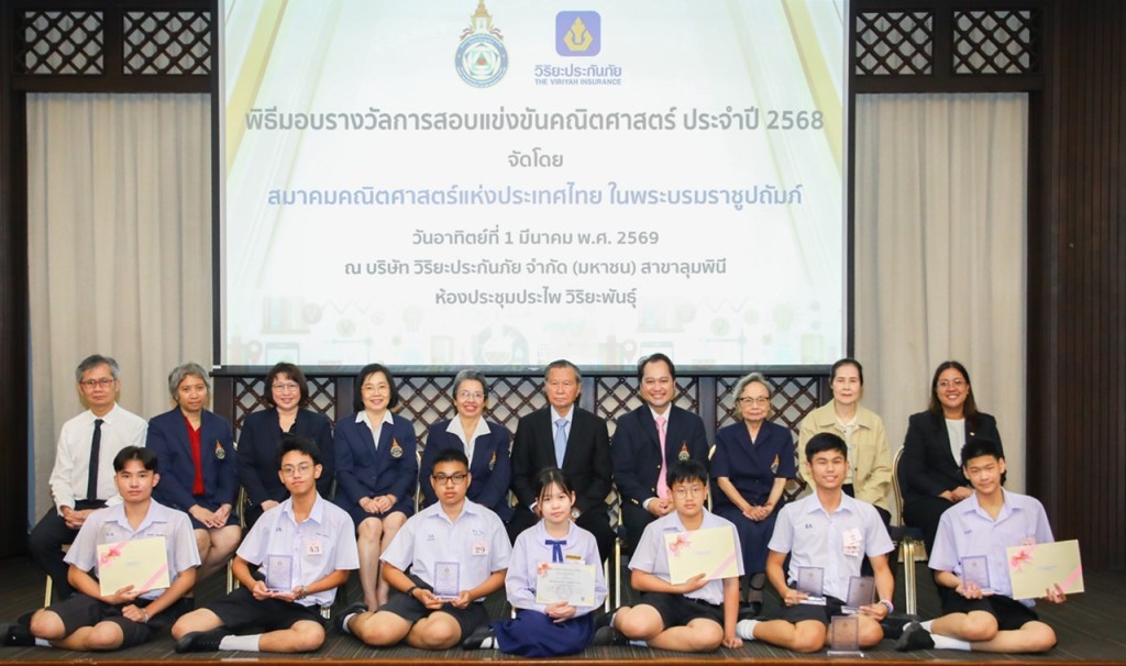 นายประสาน นิลมานัตต์ กรรมการและที่ปรึกษา บริษัท วิริยะประกันภัย จำกัด (มหาชน) ให้เกียรติเป็นประธานใน “พิธีมอบรางวัลการสอบแข่งขันคณิตศาสตร์ ประจำปี 2568” ในโอกาสที่บริษัทฯ ร่วมสนับสนุน “สมาคมคณิตศาสตร์แห่งประเทศไทย ในพระบรมราชูปถัมภ์” จัดการสอบแข่งขันคณิตศาสตร์ สำหรับนักเรียนชั้นประถมศึกษา มัธยมศึกษาตอนต้น และมัธยมศึกษาตอนปลาย ในระดับประเทศและระดับภูมิภาค พร้อมสนับสนุนเงินรางวัลสำหรับนักเรียนที่ได้รับรางวัลที่มีคะแนนสูงสุด ทั้งประเภทบุคคล และประเภททีม รวมจำนวนทั้งสิ้น 250,000 บาท เพื่อเป็นการเชิดชูเกียรติและเสริมสร้างแรงบันดาลใจทางการเรียนรู้ต่อไปในอนาคต ทั้งนี้ นักเรียนที่ได้รับรางวัลชนะเลิศระดับประเทศ ประเภทบุคคล จะได้รับโล่พระราชทานสมเด็จพระเจ้าพี่นางเธอ เจ้าฟ้ากัลยาณวัฒนา กรมหลวงนราธิวาสราชนครินทร์ โดยพิธีมอบจัดขึ้น ณ ห้องประชุมประไพ วิริยะพันธุ์ บริษัท วิริยะประกันภัย จำกัด (มหาชน) สาขาลุมพินี