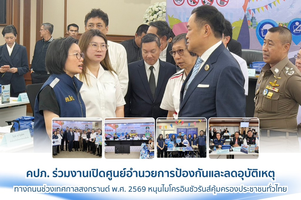 สำนักงาน คปภ. เดินหน้าสนับสนุนนโยบายความปลอดภัยทางถนนช่วงเทศกาลสงกรานต์ 2569 อย่างเข้มข้น เข้าร่วมพิธีเปิดศูนย์อำนวยการป้องกันและลดอุบัติเหตุทางถนน ตอกย้ำการบูรณาการความร่วมมือของภาครัฐทุกภาคส่วนในการควบคุมและลดความสูญเสียในช่วง “7 วันอันตราย” พร้อมผลักดัน “ไมโครอินชัวรันส์” เป็นกลไกสำคัญในการเสริมสร้างหลักประกันความเสี่ยงให้ประชาชนอย่างทั่วถึงและเป็นรูปธรรม
